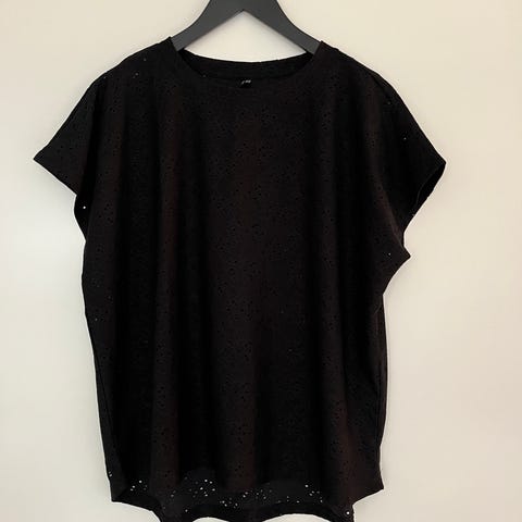 Just Female bluse til dame i størrelse XL. Blusen er sort og fremstillet i læder med kort ærme og dyb V-udskæring. Modellen har en enkel front uden lukning og en glat bagside med syninger som detalje. Indersiden er foret for øget komfort. Velegnet som overdel til både hverdag og mere formelle anledninger. Der er små misfarvninger som kan ses på det sidste to billeder. Det kan sikkert dækkes med en sort læderfedt.