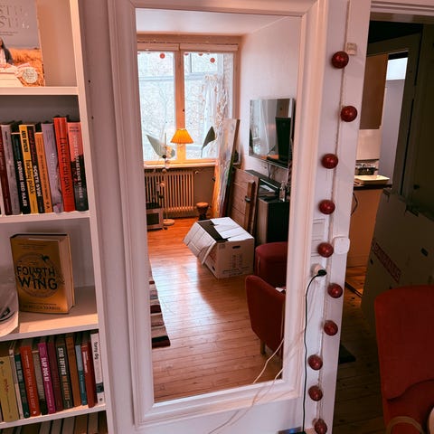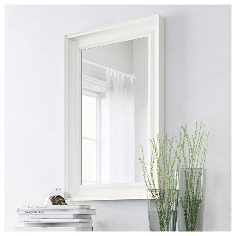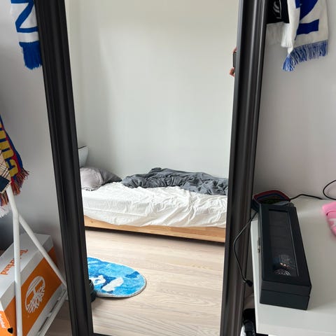 IKEA spejl med bred, sortbrun ramme. Rektangulær model, der kan hænges vandret eller lodret efter behov. Rammen har profileret kant i mørk træ-finish. Egnet til brug i fx stue, entré eller soveværelse som vægspejl. Bagsiden har ophængsbeslag til montering på væg. 60x90cm.