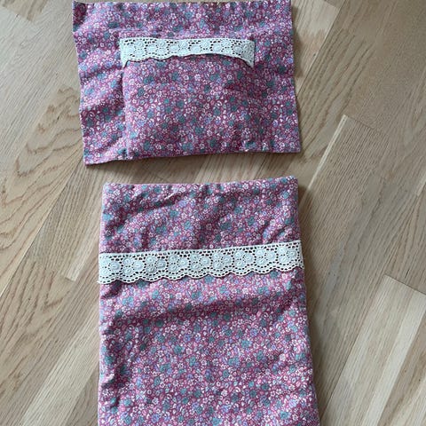 Dyne og pude til dukkevogn.