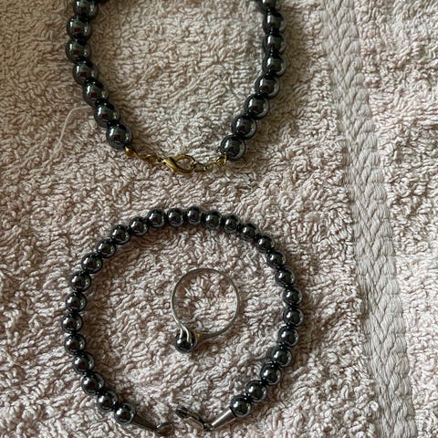 Blodsten i mørkegrå/sort blank. Det er ikke købt som sæt, men kan bruges som sæt eller hver for sig.