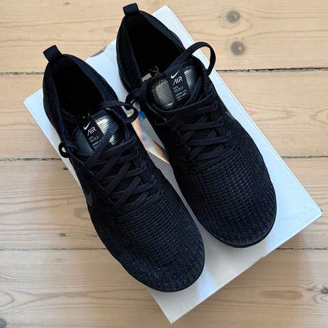 Nike sneakers i størrelse 44,5 Modellen er i sort farve med snørelukning og kraftig sål. Overdelen fremstår i en kombination af tekstil og syntetiske materialer med synlige detaljer langs siderne. Velegnet som hverdagssko eller til fritidsbrug.