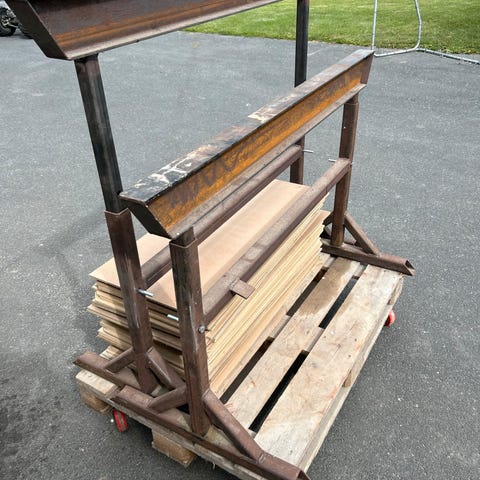 3 meter lang buk, der har siddet under en rampe. Kan justeres i højden, og er på hjul.