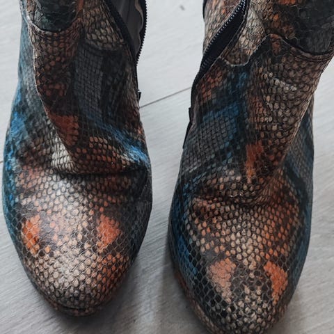 bred skaft se mål. Så flotte læder udvendig ....men æv indvendig er de beklædt med noget som ikke er læder som krakelerer æv æv. De er super fede men tror det indvendige skal nuldres af. Sælger dem derfor billigt. Udvendig bare flotte og total boho wibe.