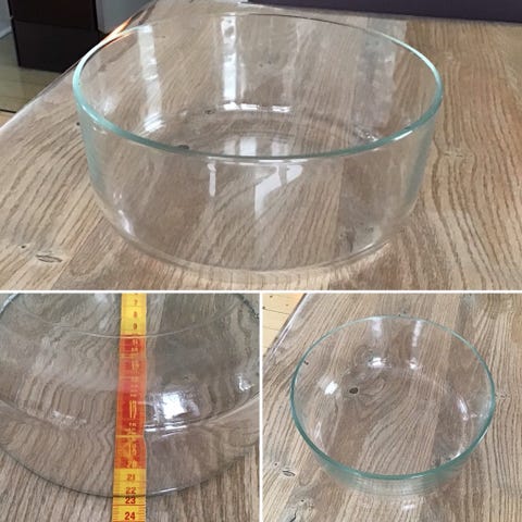 Sort glassalatskål med tag-bestik i plast.