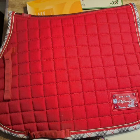 Nyvasket pænt og helt rider by horse spring underlag i farven cherise. Billedet snyder, det ser orange ud men det er det ikke. Mere en mørk pink. Ingen fejl eller skader.