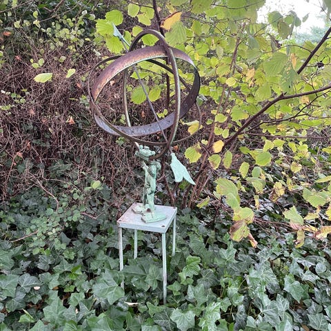 Antik SOLUR metal kobber H:77CM , super flot charmerende gammel skulptur sol ur til have eller evt til pynt til hjemmet , kan adskilles og renses.