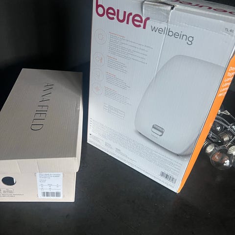 Beurer TL 30 dagslys lampe i hvid. Kompakt lampe til lysterapibrug, egnet til placering på bord eller anden plan overflade. Medfølgende strømadapter, brugervejledning og opbevaringsetui som vist på billederne. Lampen er rektangulær og tilsluttes med ledning til almindelig stikkontakt. Mangler desværre foden/holderen men kan bare stå op ad noget