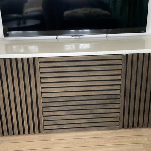 Skænken har et diskret udtag til ledninger, så kan bruges som TV møbel eller blot et smuk møbel med god opbevaring.