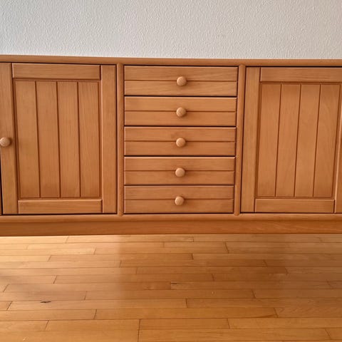 Meget velholdt skænk i hvidpigmenteret egetræ købt hos Bolia.com.