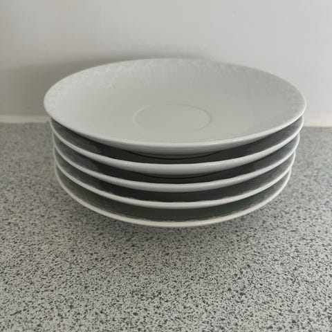 Royal Copenhagen tallerken i hvidt porcelæn. Klassisk, enkel dekoration med svag reliefkant. Velegnet som middagstallerken eller serveringstallerken i stel fra Royal Copenhagen. Egnet til daglig brug eller som del af et komplet stel.