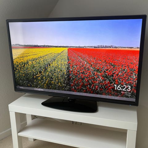 Ældre Grundig fladskærms-tv. Egnet til placering på bord eller TV-møbel. Velegnet som hoved- eller børne-tv i hjemmet, f.eks. i stue, soveværelse eller sommerhus. Fungerer med Chromecast eller spillekonsol. Møblet kan følge med.