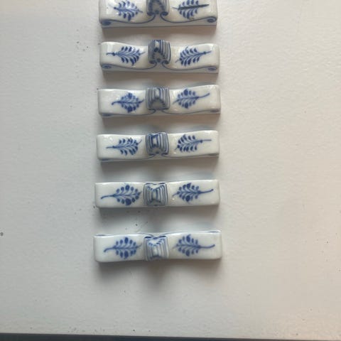 6 stk elegante forsølvede knivstole udformet som svaner. Ligger i originalemballagen. Sælges for min svigermor som er flyttet i plejebolig - tror de er ret gamle.