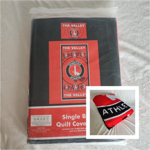 Helt nyt, ubrugt sengesæt i sort og hvid med Manchester United-logo. Ét dynebetræk (135 x 200 cm) med to tilhørende hovedpudebetræk (bred model).