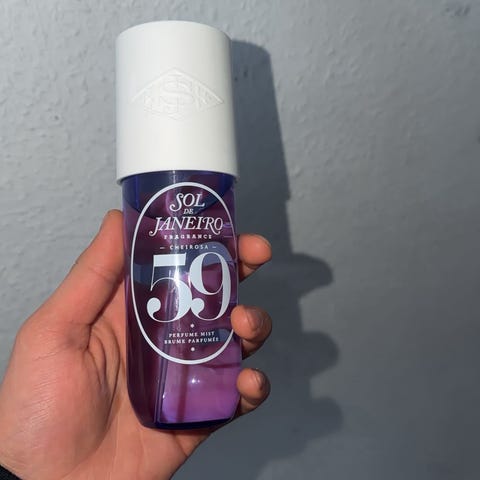 Næsten fuld parfume. Sol de Janeiro Cheirosa 68 bodymist med duftnoter af pink dragonfruit, lychee essence og brasiliansk jasmin. Produktet leveres i en gennemsigtig rosa plastflaske med hvid spraytop. Indholdet er 240 ml bodymist, velegnet til brug på krop som let duftspray i hverdagen.