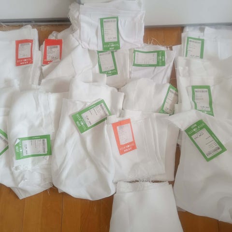 Bomuld og filt, rester fra sy-tiden, så er du kreativ, så kan det sagtens bruges, sælges samlet - kommer fra røg & dyrefrit hjem.