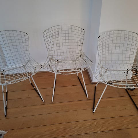 Ikoniske og tidløse spisebordsstole tegnet af Harry Bertoia for Knoll International i 1958, model Side Chair.