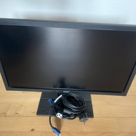 Acer V226HQL skærm på 21". LCD/LED-skærm egnet til brug med stationær computer. Skærmen har strømstik og VGA-tilslutning, og der medfølger strømkabel og VGA-kabel som vist på billederne. Velegnet til almindeligt kontor- og hjemmebrug, fx internet, tekstbehandling og generel pc-brug.