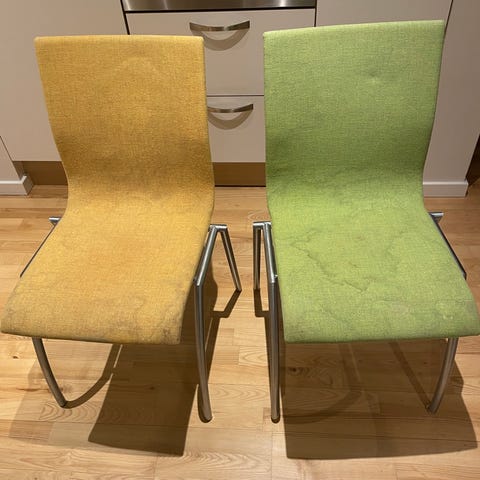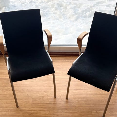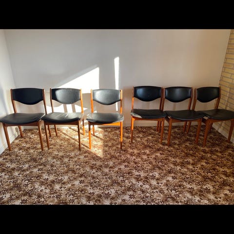 6 stk Christian Hvidt konferencestol 420, produceret for Søborg møbelfabrik. Disse 6 har stået på direktionsgangen på de danske sukkerfabrikker. Stoffet er slidt og der er brugsspor. 1000 kr pr stk. Alle 6 for 5000 kr.