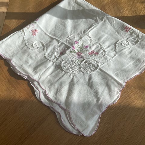 Meget flot ældre hånd broderet påske dug med de fineste påske blomster buketter.