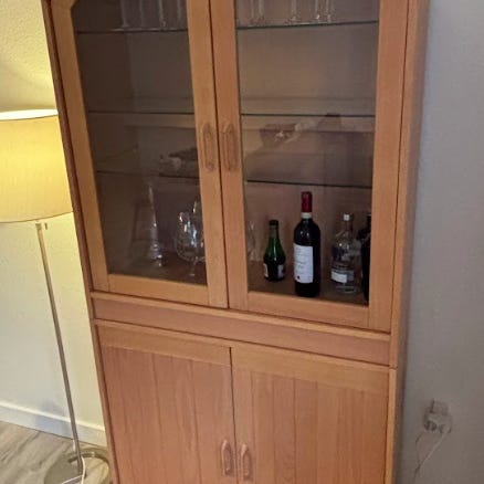 Vinskab med 5 hylder, 6 flasker på hver hylde.