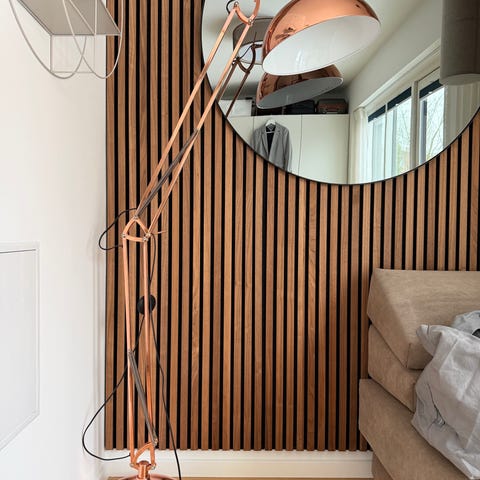 - Design: Slim black frame with an adjustable light socket position.