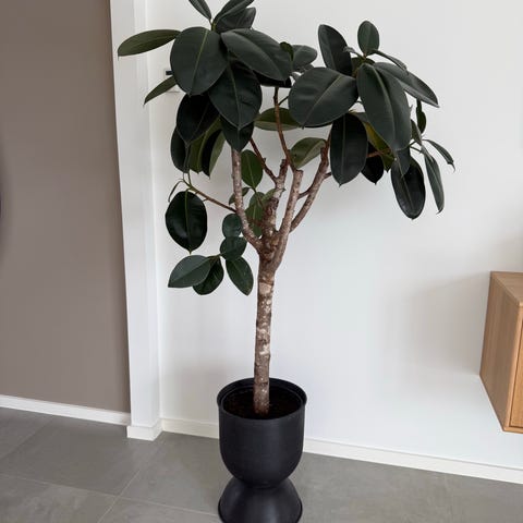 Flot stort gummitræ, 180 cm højt og 150 cm bredt. Det skyder nye blade hele tiden. Fast pris! Kan leveres i Kbh. Krukke medfølger ikke! Men kan tilkøbes for 2500,-