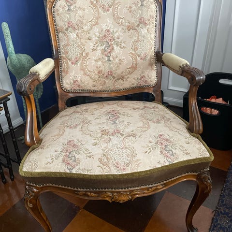 Ukendt mærke antik træstol med rød polstret sæde