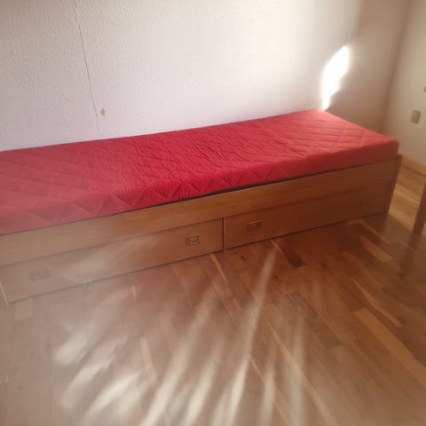 Solid Skibsbriks med et stort opbevaringsrum under lamelbunden, som nemt kan slås op.