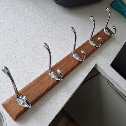 Egetræs knagerække til viskestykker.