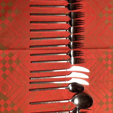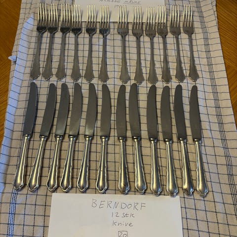 12 skeer , 12 gafler , 12 knive og 1 pålægsgaffel