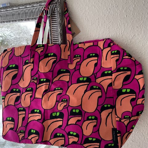 Rummelig weekendtaske i økologisk bomuld med HAY's karakteristiske logomønster. Med målene H38 x B90 x L54 centimeter får du rigeligt med plads til både shopping og weekendture.