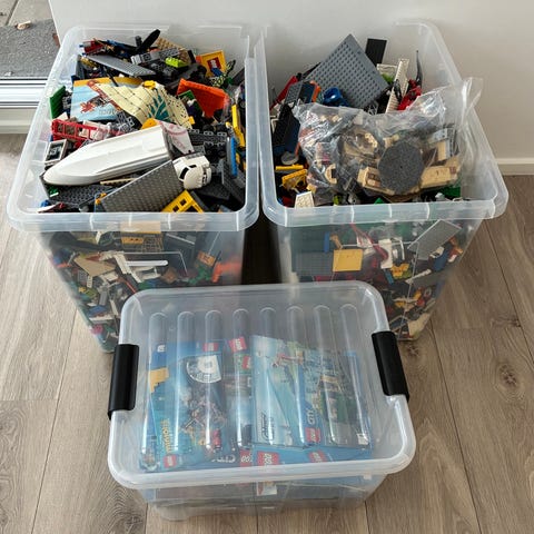 Stor samling Lego klodser 15,5kg med, Ninjago, Atlantic og star wars dog uden minifigurer. Kassen følger med, men den har et lille hul i bunden