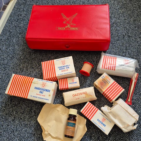 Falck nød og forbindingskasse fra ikke ryger hjem sælges og den kan sendes