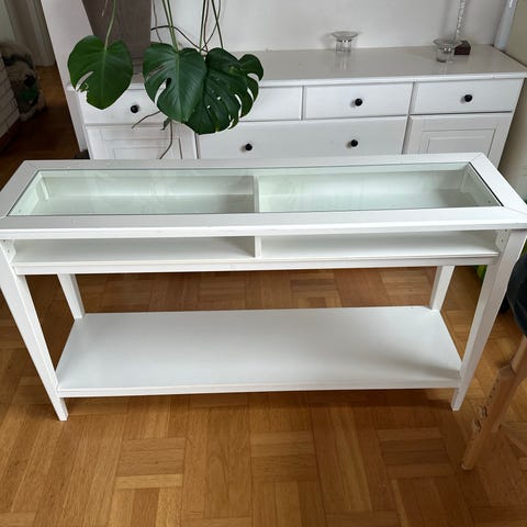 IKEA skænk i sort med skuffer, skabslåger og åbent rum.