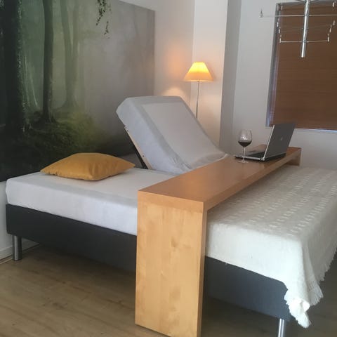 Kan indstilles og trækkes ind over seng eller stol. Velegnet til at spise, arbejde eller læse ved for sengeliggende eller hvis man har brug for at tilbringe megen tid i lænestol.
