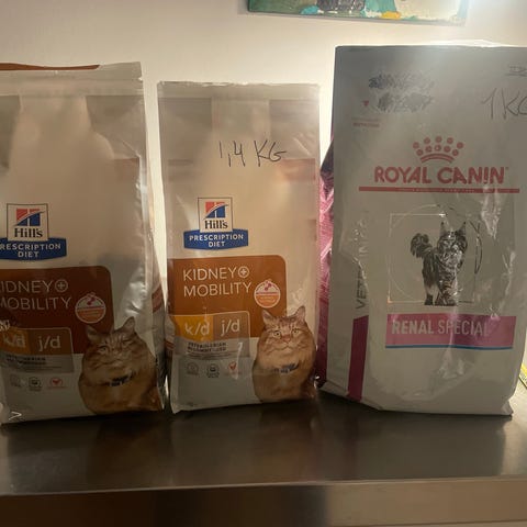 Hills prescription diet kidney mobility. 4 pakker a 12stk + 9 løse. Nypris800,- sælges for 300,-