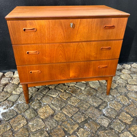 4 skuffer med indlagte greb (Øverste skuffe med lås og nøgle)