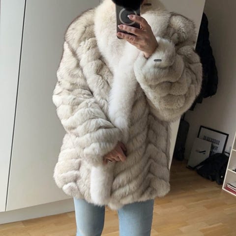 Sælger den varme pels i ægte ræv passer ca til str 38-40, lukning med hægter. Føles let og blød på kroppen. Mål kan fremsendes.