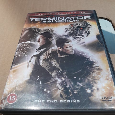 Terminator Salvation dvd film. Action- og science fiction-film i dvd-format med aldersmærkning 15 år. Standard dvd-cover med filmens originale omslagstekst og grafik.