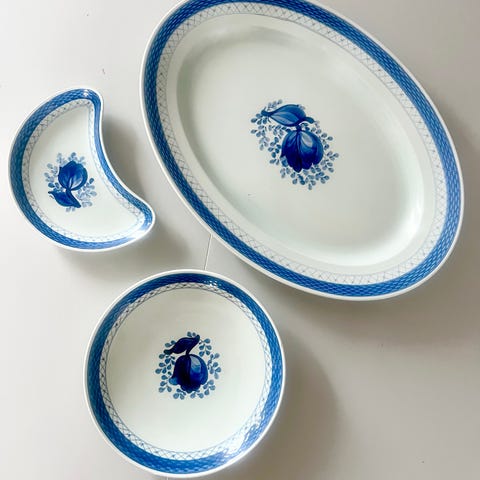 Aluminia ovalt serveringsfad. Håndmalet musselmalet fajance. I fin stand.