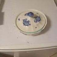 Porcelæns tarin med låg dekoreret med blomster på ben