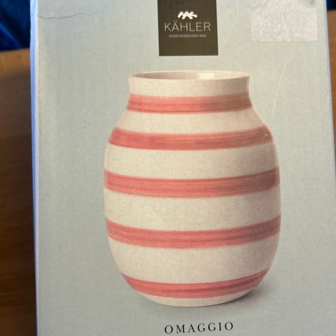 Keramik, vase,30,5 cm, KÄHLER, Omaggio, hvid med sorte håndmalede striber, klassisk, enkel, stilsikker, super flot til høje blomster, Design: Ditte Reckweg/Jelena Schou Nordentoft i samarbejde med Kâhler. SOM NY. Sender gerne .IKKE MED FIKS FÆRDIG Porto oveni