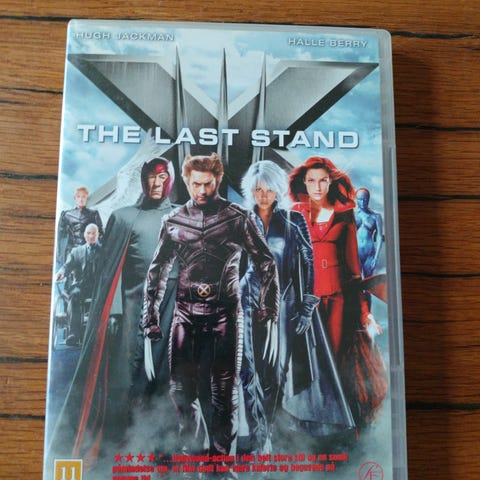 X-Men The Last Stand dvd. Film i dvd-format med originalt cover. Forsiden viser titel og hovedfigurerne fra filmen. Velegnet til afspilning på dvd-afspiller, der understøtter standard dvd-region for udgivelsen.