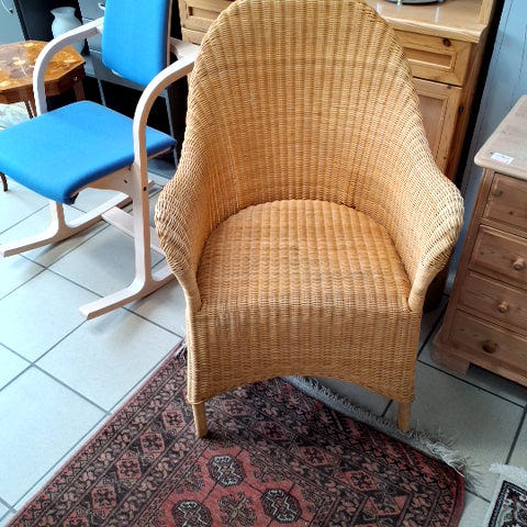 Fletstol i kurveflet, udført i naturfarvet rotting. Stolen har høj, skråt tilbagelænet ryg og rund fod, som giver en omsluttende siddeform. Egnet som loungestol i stue, udestue eller værelse. Materialet er flettet naturflet, som giver et let og luftigt udtryk.