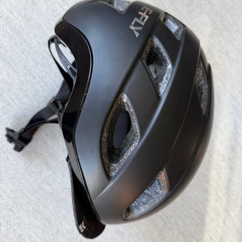 Kali Protecmes mountainbike cykelhjelm i sort. Hjelmen har integreret skygge/visor foran og flere ventilationshuller for luftgennemstrømning. Justerbar rem under hagen og i nakken. Velegnet til brug på cykel, f.eks. mountainbike eller hverdagscykling. Str. L/XL - brugt men i fin stand og stadig funktionel. Har vasket den og der fået nogle hvide skjolder (se billedet).