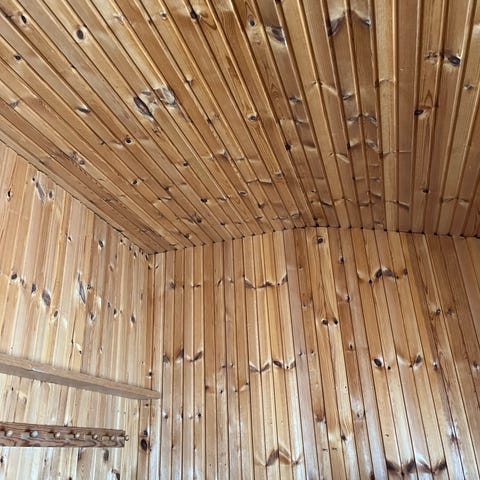 Træ loftbrædder i fyr med gennemgående fer og not.