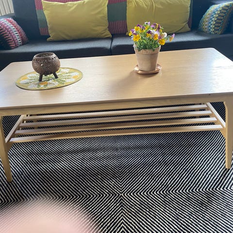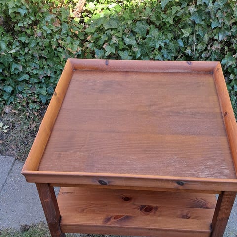 Sofabord til din første lejlighed, gæsteværelset eller kælder. Enkelt flot design, men med en del brugsspor. Kvadratisk 80 x 80 cm. Højde 55 cm.