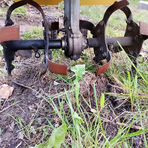 Texas havefræser med benzinmotor på 3 HK. Modellen er udstyret med Briggs & Stratton motor, håndtag med betjeningsgreb og fræserknive foran. Starter og kører fint.