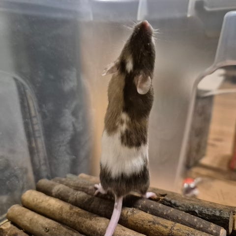 Hun er meget nysgerrig af sind og spiser gerne fra hånden.