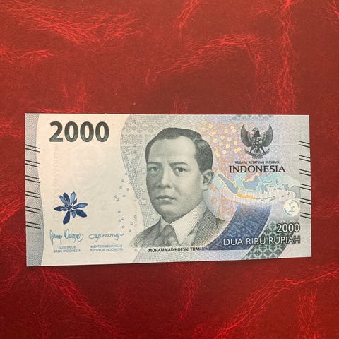 Bank Indonesia 100 rupiah pengeseddel. Motivet viser et sejlskib på den ene side og et landskab med vulkan på den anden side. Velegnet til samlere af udenlandsk valuta og sedler fra Indonesien.flot kvalitet 0 1992